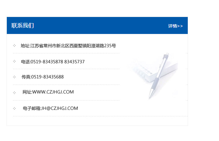 傳真:0519-83435688    郵編:213135    網址:WWW.czjhgj_com.ksjuming.com    電子郵箱:JH@czjhgj_com.ksjuming.com